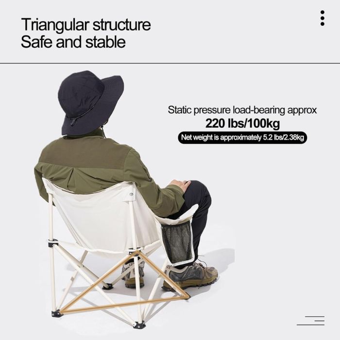 كرسي مثالي لكل مغامرة، حيث يجمع بين الراحة والمتانة بتصميم مبتكر. كما يتحمل وزن يصل إلى 100 كجم بثبات، خفيف الوزن لسهولة الحمل. كما أنه مثالي للمخيم، النزهات، والأنشطة الخارجية. استمتع بلحظات استرخاء لا تُنسى في أي مكان
