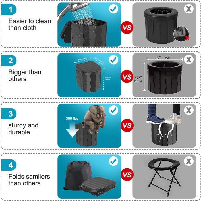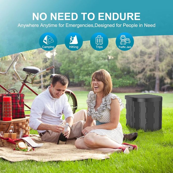 - حمام محمول بتصميم قطعة واحدة لسهولة التركيب والطي خلال ثوانٍ. مثالي للطوارئ في الهواء الطلق.