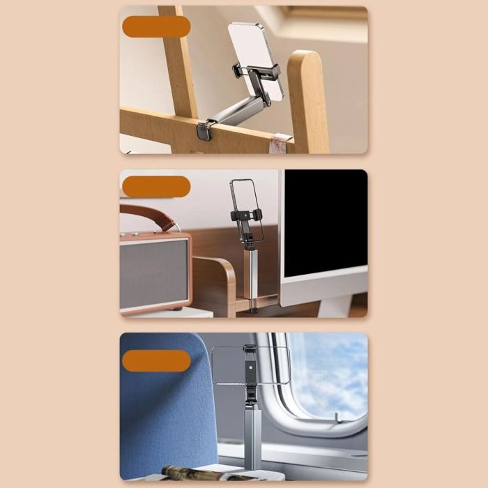 حافظ على هاتفك مثبتاً وآمناً أثناء الرحلات أو التنقل مع هذا الحامل المدمج والقابل للطي. مصمم للتثبيت على طاولات الطيران أو أسطح مُماثلة، يوفر وضعية مشاهدة عمودية أو أفقية لتتمكن من مشاهدة الأفلام أو إجراء المكالمات أو استخدام الهاتف دون استخدام اليدين. خفيف الوزن، يطوى بالكامل داخل حقيبة اليد، ويُعدّ الحل الأمثل للراحة والاتصال أينما كنت.