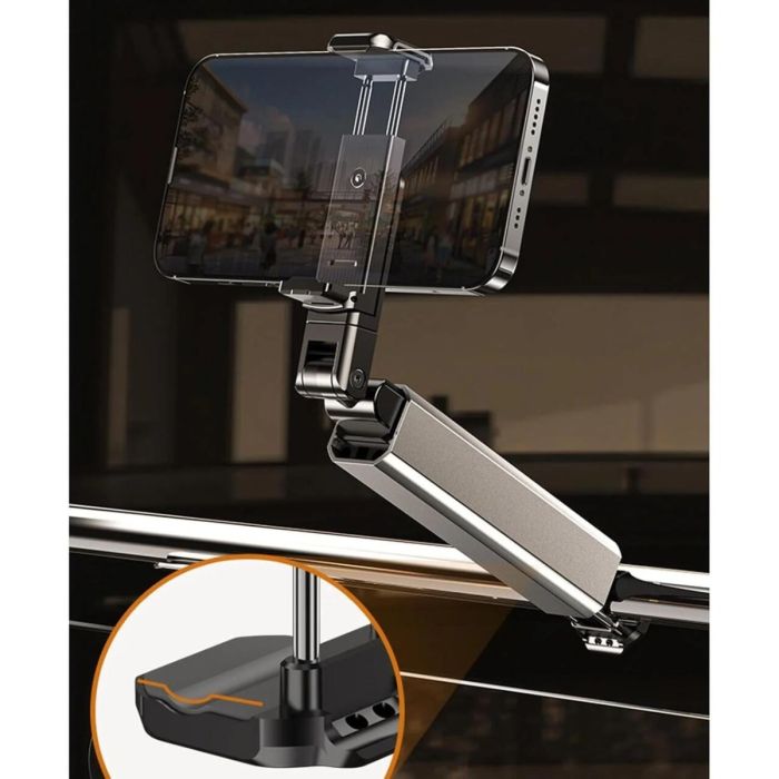 - مِشبك أو مشبك قوي يتيح التثبيت على طاولات الطائرة أو حواف المكتب أو الأسطح المختلفة.