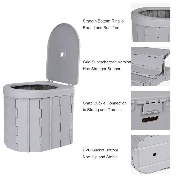 استمتع بالراحة والنظافة أينما كنت مع المرحاض المتنقل القابل للطي. تصميم قوي ومتين يتحمل حتى 180 كجم، سهل الحمل والتخزين، ومثالي للتخييم والسفر والرحلات الطويلة
