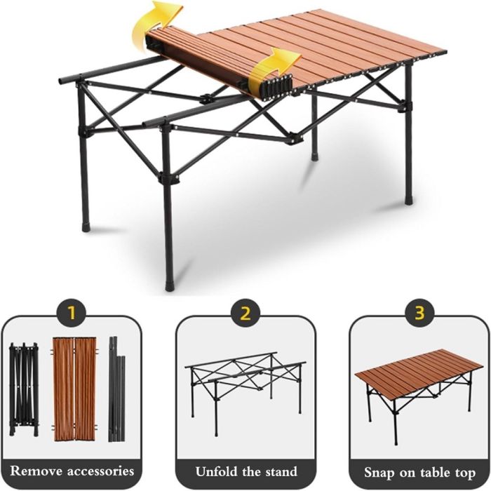 طاولة مصنوعة من الألومنيوم عالي الجودة، يمكن طيها وفتحها في 3 دقائق فقط. مع تصميم سهل التنظيف يجعلها مناسبة لتناول الطعام