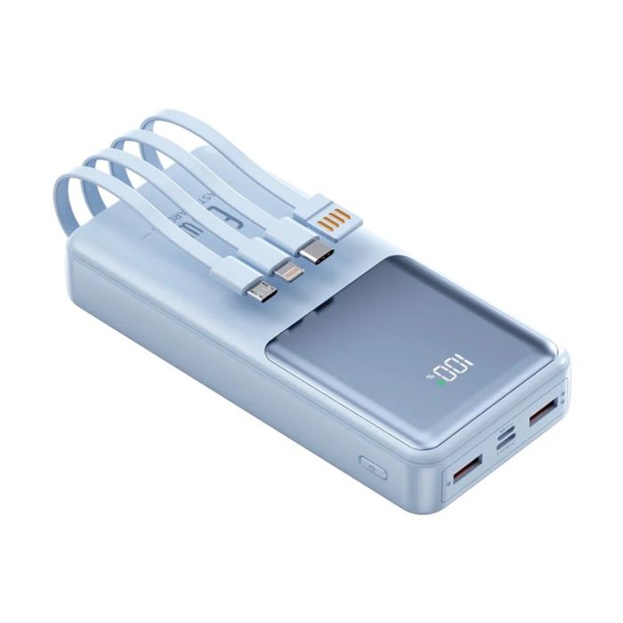 بنك طاقة أنيق وعالي السعة مصمم للحفاظ على تشغيل أجهزتك في أي وقت وأي مكان. يتميز بتصميم أزرق متدرج جذاب وهيكل نحيف وخفيف يجمع بين المظهر العصري والأداء العملي الموثوق. مزود بمنفذي USB-A و USB-C يتيحان شحن جهازين في وقت واحد، كما توفر تقنية الحماية الذكية أماناً كاملاً ضد التيار الزائد والجهد الزائد وارتفاع الحرارة. بطاريته من نوع ليثيوم-بوليمر عالية الكثافة تضمن كفاءة في توزيع الطاقة وعمر استخدام طويل، مع مؤشرات LED توضح مستوى الشحن المتبقي. مثالي للسفر والعمل والاستخدام اليومي، فهو رفيق موثوق لشحن هاتفك أو جهازك اللوحي أو ملحقاتك في أي مكان.