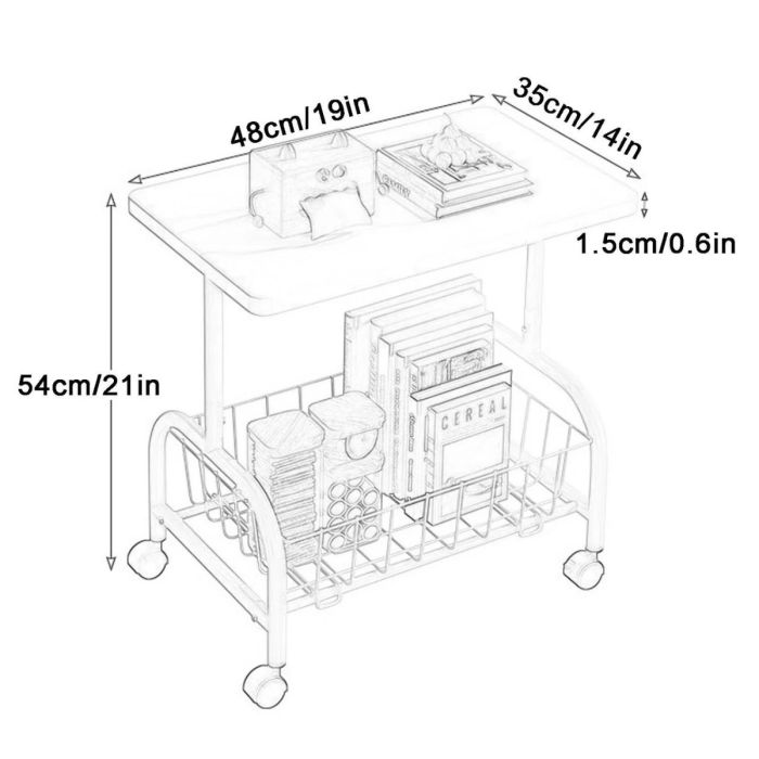 - طاولة لابتوب مع سلة سفلية وعجلات 54 × 48 × 35 سم