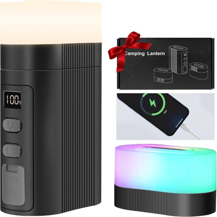 - تصميم 2 في 1: مصباح تخييم + بنك طاقة