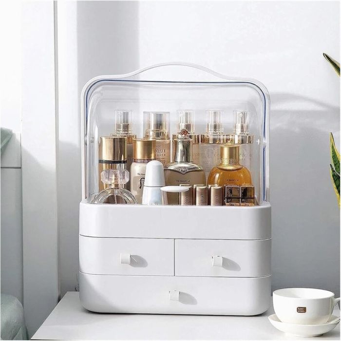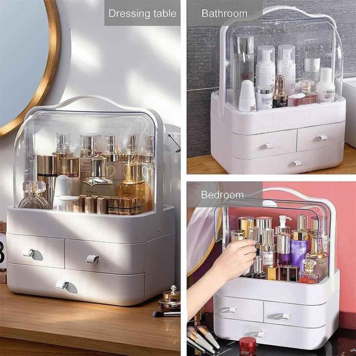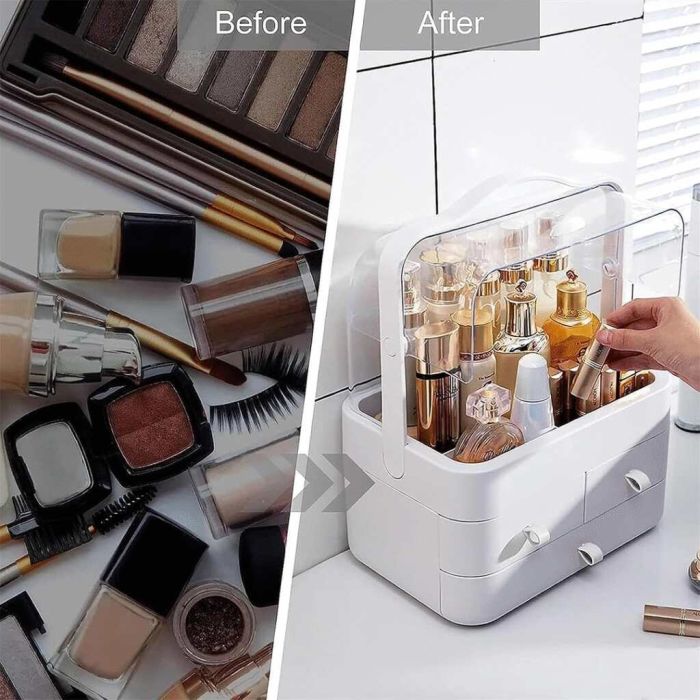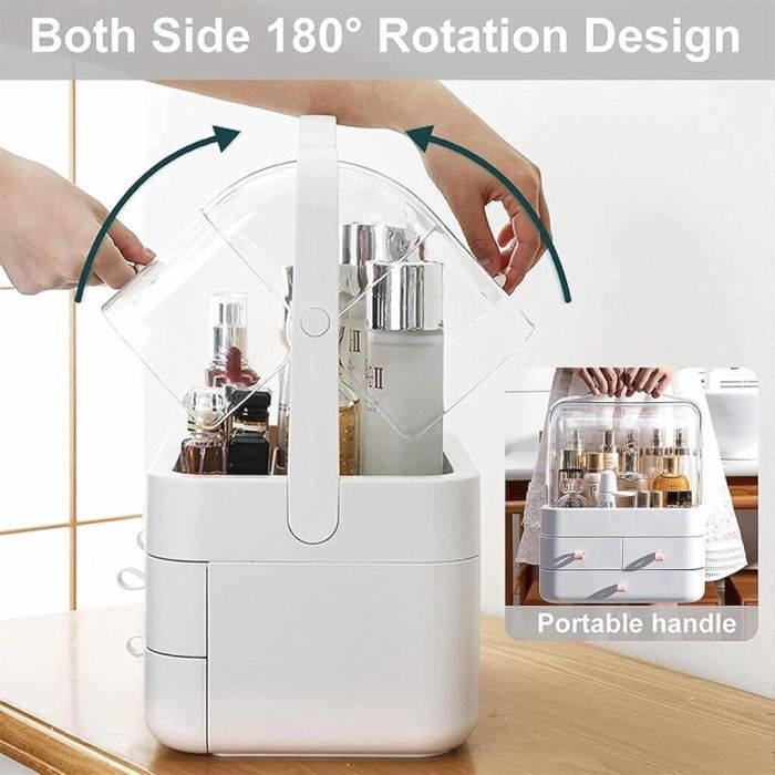 حافظي على روتين جمالكِ منظمًا مع منظم مستحضرات العناية بالبشرة هذا. مصمم بغطاء شفاف مقاوم للغبار ومقبض محمول، يوفر سهولة الوصول ويحمي مستلزماتكِ الأساسية من الغبار والماء. سواءً وُضع على طاولة الزينة أو خزانة الملابس أو منضدة الحمام، يُضفي هذا الصندوق لمسةً عمليةً وأنيقةً.