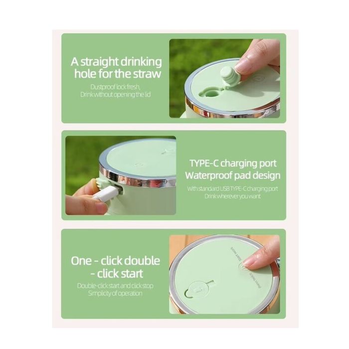 استمتع بمشروبات سموزي وعصائر طازجة في أي وقت مع هذا الخلاط المحمول عالي الأداء. مصمم بعشر شفرات قوية من الفولاذ المقاوم للصدأ وبطارية قابلة لإعادة الشحن عبر USB، ليمنحك خلطًا سريعًا وسلسًا أينما كنت. مع خيارات سعة 800 مل و1200 مل، فهو مثالي للمنزل أو المكتب أو أثناء السفر. خفيف الوزن، سهل التنظيف، ومصمم لتوفير الراحة.