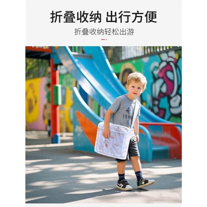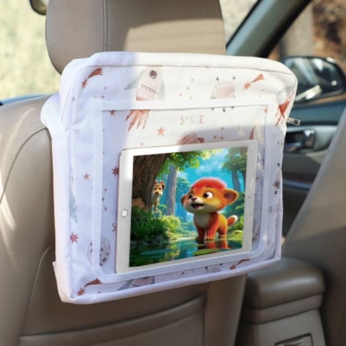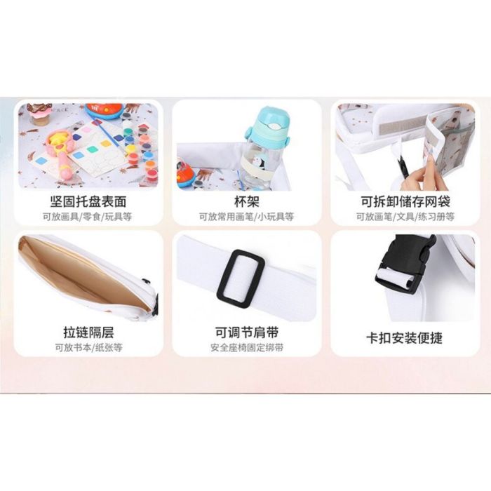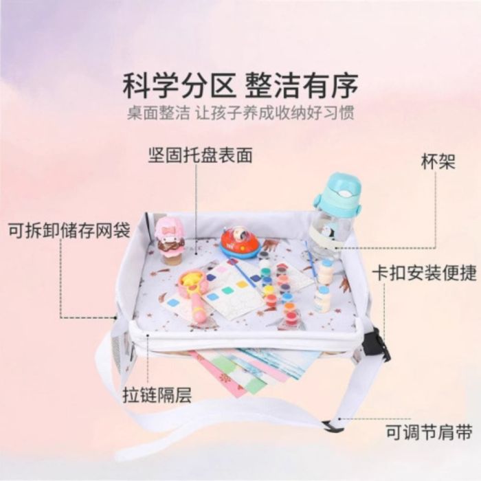 لوحة رسم للأطفال متنقلة متعدد الوظائف مصنوعة من بوليستر متين، توفر سطحاً ثابتاً للرسم والكتابة، مزودة بجيوب تخزين وشبكة جانبية، تصميم قابل للطي بحزام تثبيت، مثالية للرحلات والاستخدام داخل السيارة