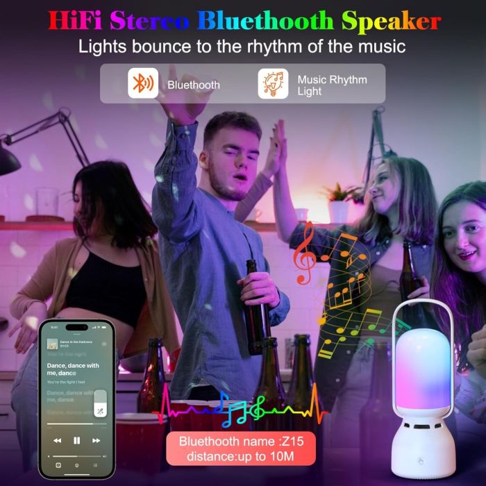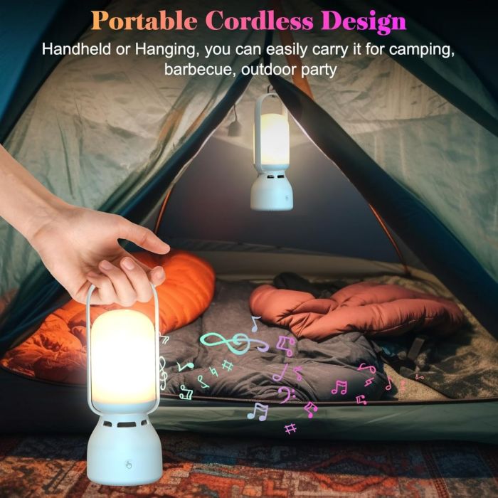 - تصميم 4 في 1 يجمع بين مكبر صوت محمول، ومصباح ، ومصباح ليلي، وفانوس ديكور