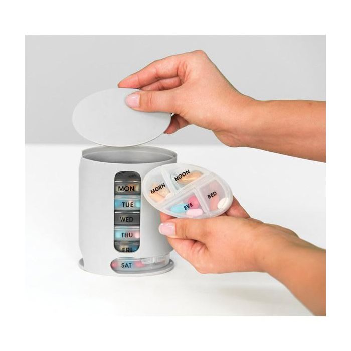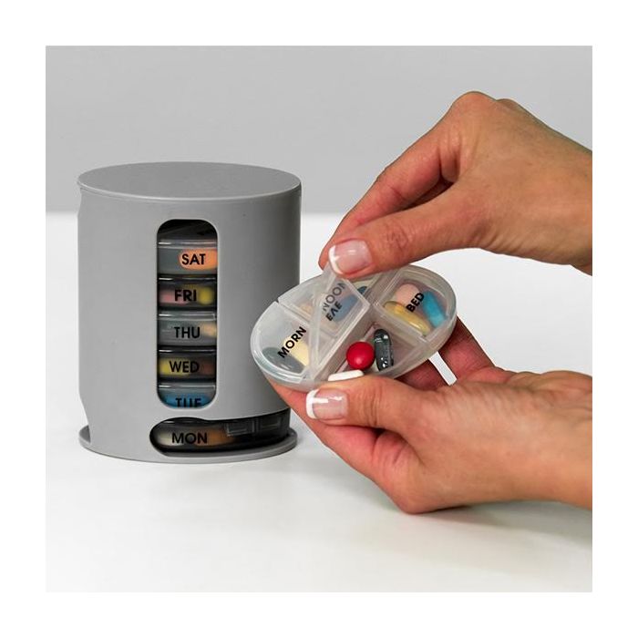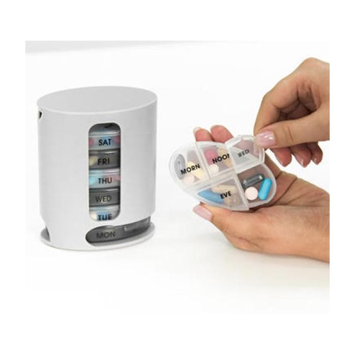 - علبة قابلة للحمل لتنظيم الأدوية والحبوب الأسبوعية