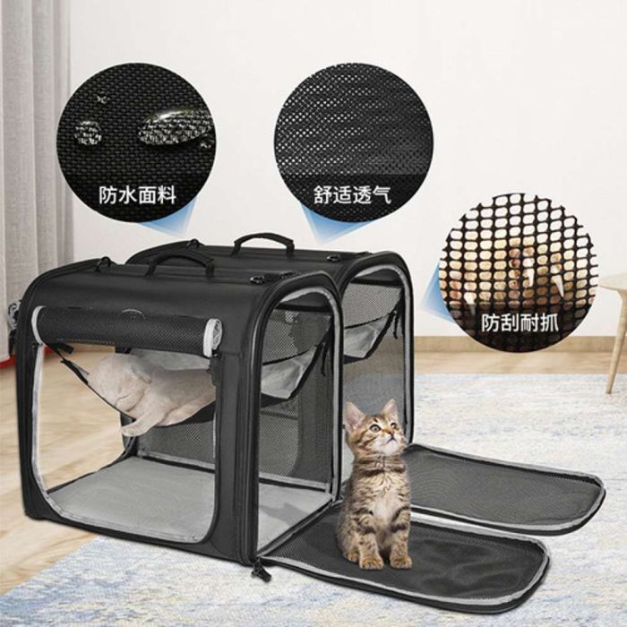بيت حيوانات أليفة متنقل مع حقيبة تخزين ووعاء قابل للطي مصنوع من خامات متينة وجيدة التهوية، يوفر مساحة مريحة وآمنة للحيوان الأليف، مناسب للتنقل والسفر أو الاستخدام المنزلي، تصميم عملي محمول يمنح الحيوان راحة مستمرة