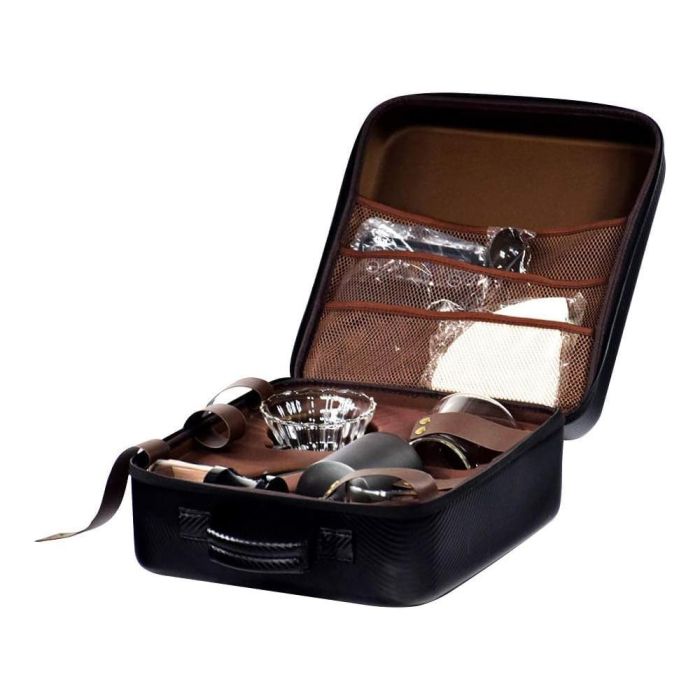 يتيح لك طقم HI-TEX تحضير القهوة الطازجة في أي مكان. يحتوي على إبريق بسعة 600 مل مع صنبور طويل للتحكم الدقيق أثناء صب الماء، مطحنة يدوية لطحن الحبوب، ومقياس ديجتال مع مؤقت لضبط الكمية والوقت بدقة. جميع القطع الزجاجية مقاومة للحرارة، وتأتي الحقيبة الصلبة مع بطانة داخلية للحفاظ على ترتيب المكونات أثناء التنقل.