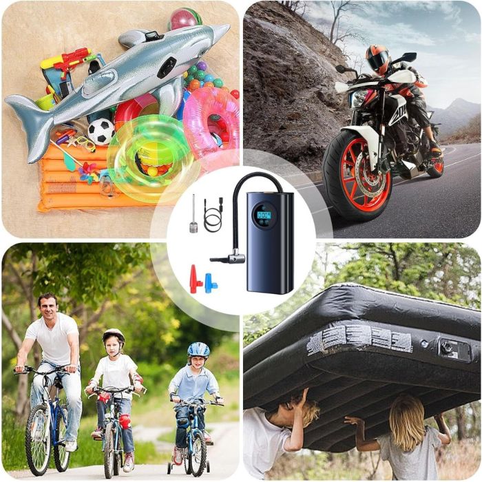 من خلال إعداد الضغط الذكي، تمنع مضخة الإطارات الكهربائية لدينا الإفراط في النفخ أو انخفاضه لأي مركبة أو غرض. استمتع براحة وأمان فريدين من خلال ميزة التوقف التلقائي. توفر مضخة الإطارات الخاصة بنا إعادة تعبئة سريعة للهواء في غضون 10 ثوانٍ، وتتميز بمحرك وأسطوانة عالية الكفاءة لأداء قوي وفعال. تصميم الشحن USB الخاص به يجعله مناسبًا للشحن في أي مكان، مما يوفر وقتك وطاقتك حتى تتمكن من الخروج في أي وقت من الأوقات.