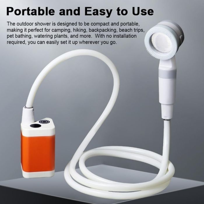 دش المخيم المحمول يوفر استحمامًا مريحًا في أي مكان، مع تدفق مياه قوي وقابل للتعديل وشاشة ذكية لعرض درجة الحرارة. مقاوم للماء وسهل الاستخدام، ويأتي مع جميع الملحقات لتسهيل التنظيف والسقي والعناية بالحيوانات الأليفة أثناء التنقل.