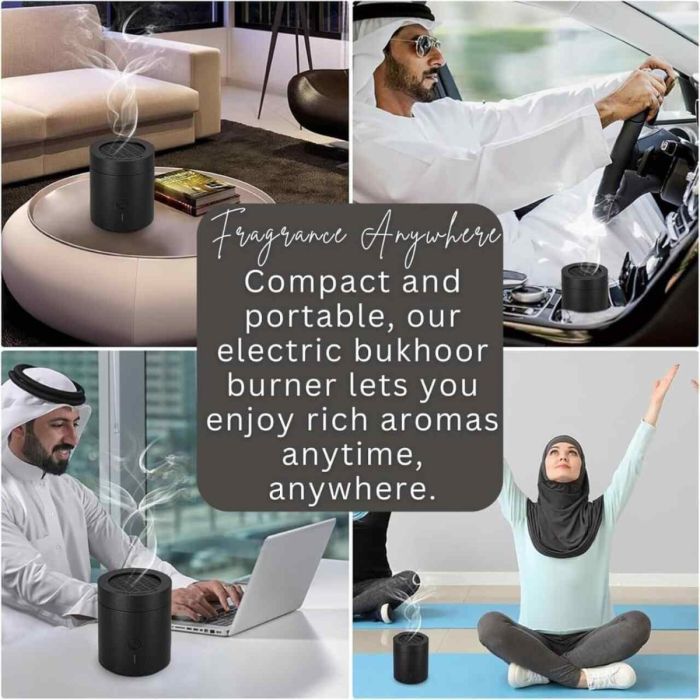 يجتمع عبق التقاليد مع راحة المستقبل في هذه المبخرة الذكية التي ترفع مستوى الأجواء دون دخان أو نار أو فوضى. سواء في السيارة أو المكتب أو غرفة الجلوس، يوفر تصميمها الأنيق والعنصر الحراري الهادئ انتشاراً مميزاً للبخور أو العود بنمط راق وسهل الاستخدام. قابلة لإعادة الشحن عبر USB، ترافقك في أي مكان وتحوّل كل مساحة إلى ملاذ عطري أنيق ونظيف وفاخر. صممت لتمنحك عمق العبير الشرقي في شكل حديث، لتصبح هذه المبخرة توقيعك الخاص لأجواء تنطق بالجمال والرقي.