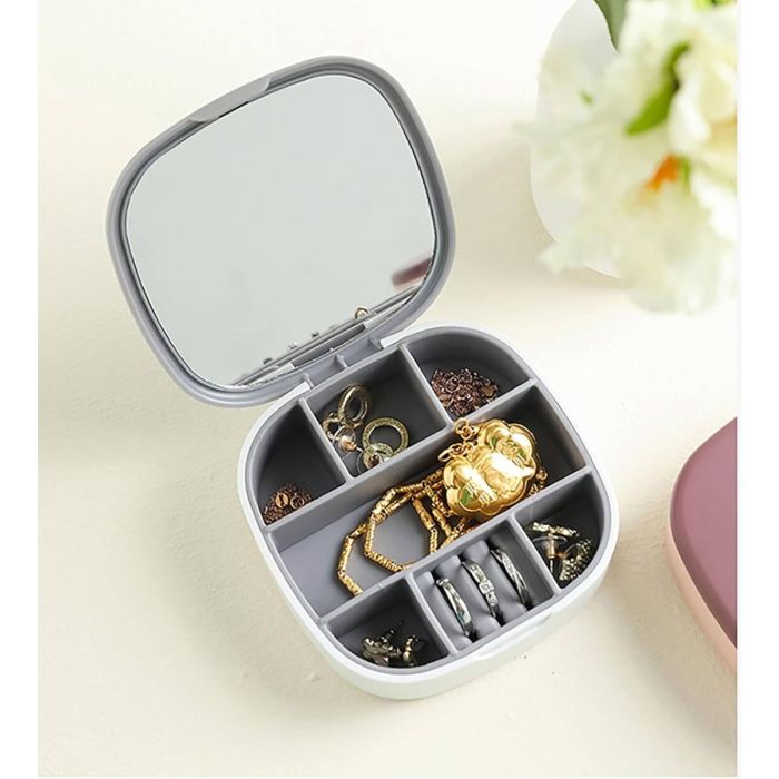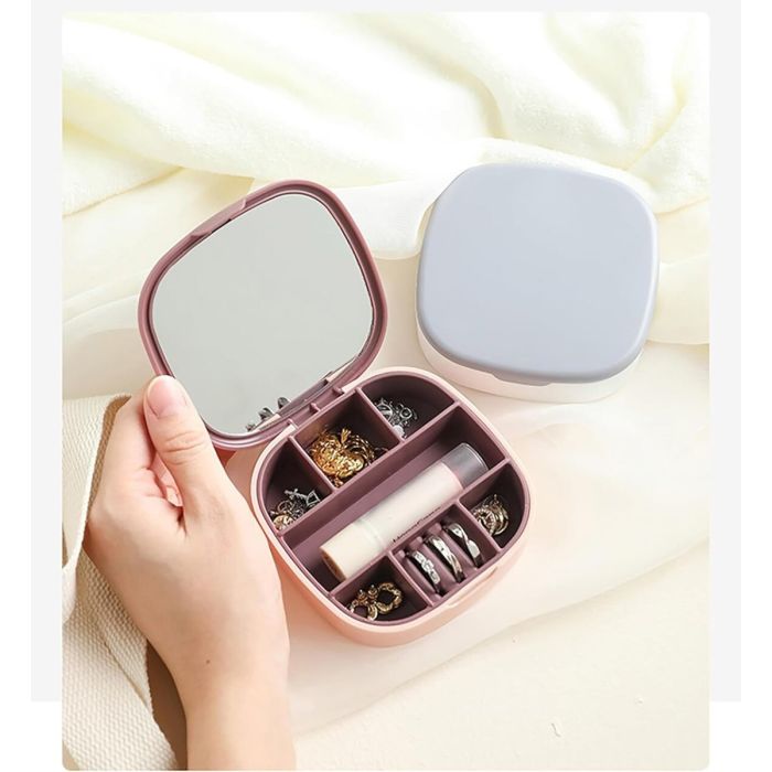 - صندوق منظم مجوهرات صغير محمول مع مرآة