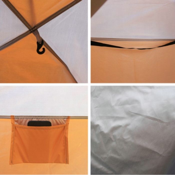 انطلق في رحلة تخييم ممتعة مع هذه الخيمة المريحة الرائعة، مصنوعة من قماش أكسفورد المقاوم للماء وأشعة الشمس كما أنها جيدة التهوية وشديدة التحمل وغاية في المتانة. حجم يتسع لشخص واحد، كما انها مثالية للعديد من المناسبات ويمكنكم استخدامها كغرفة تبديل الملابس، للاستحمام أو مرحاض للخصوصية أثناء مغامراتك الخارجية