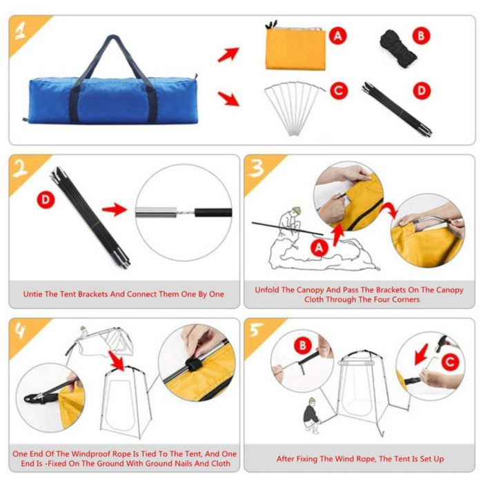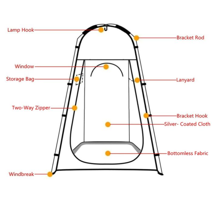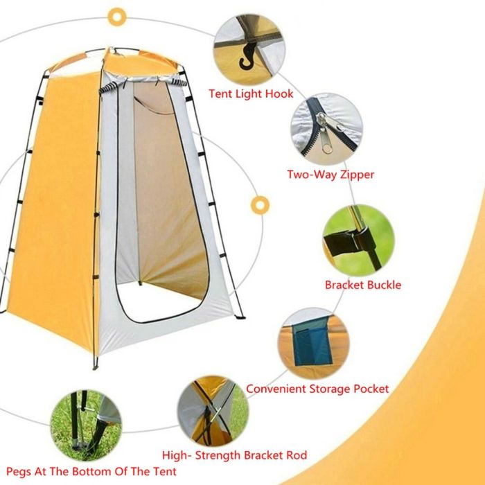 - مناسبة للعديد من المناسبات، ويمكن استخدامها كغرفة تبديل ملابس، للاستحمام، مرحاض خاص أثناء التخييم، الحداق أو النزهات