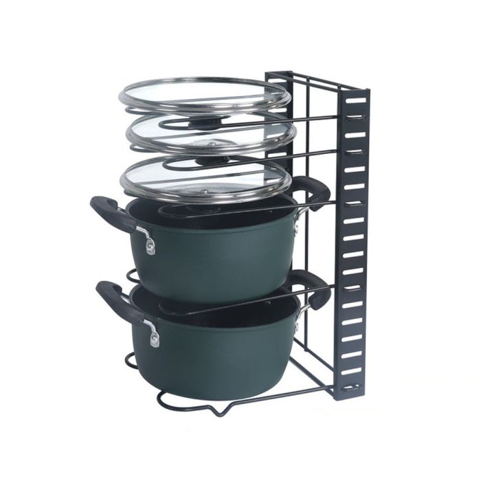 منظم الأواني يوفر لك ترتيباً ذكياً لأواني الطهي داخل خزانة المطبخ بتصميم معدني متين يتيح لك فصل القدور والمقالي وترتيبها بشكل منظم يسهل الوصول إليها في أي وقت
