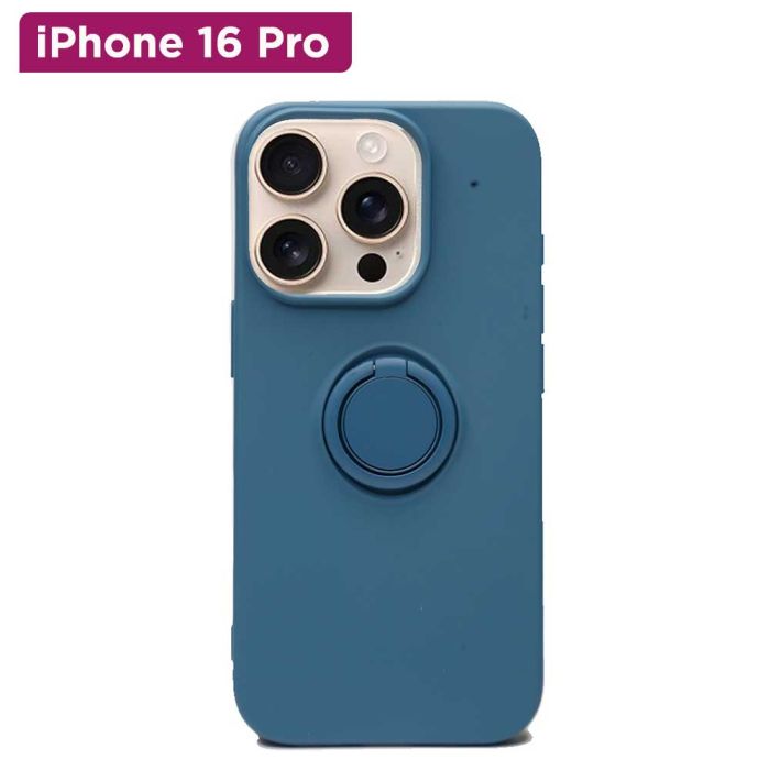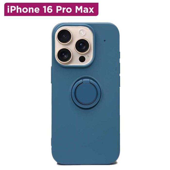 غطاء حماية لون كحلي سيليكون مع حلقة لهاتف iPhone 16 من Powerey