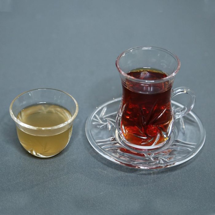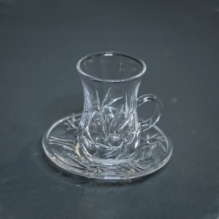 - 6 فناجين شاي + 6 أطباق شفافة + 6 فناجين قهوة عربية