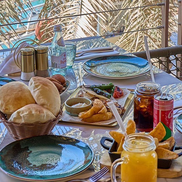 استمتعوا بـ قائمة فطور فاخرة لشخصين في Bayroof Restaurant، مع تشكيلة مميزة من الأطباق الطازجة والمشروبات في أجواء دافئة وأنيقة — بداية مثالية ليومكم.