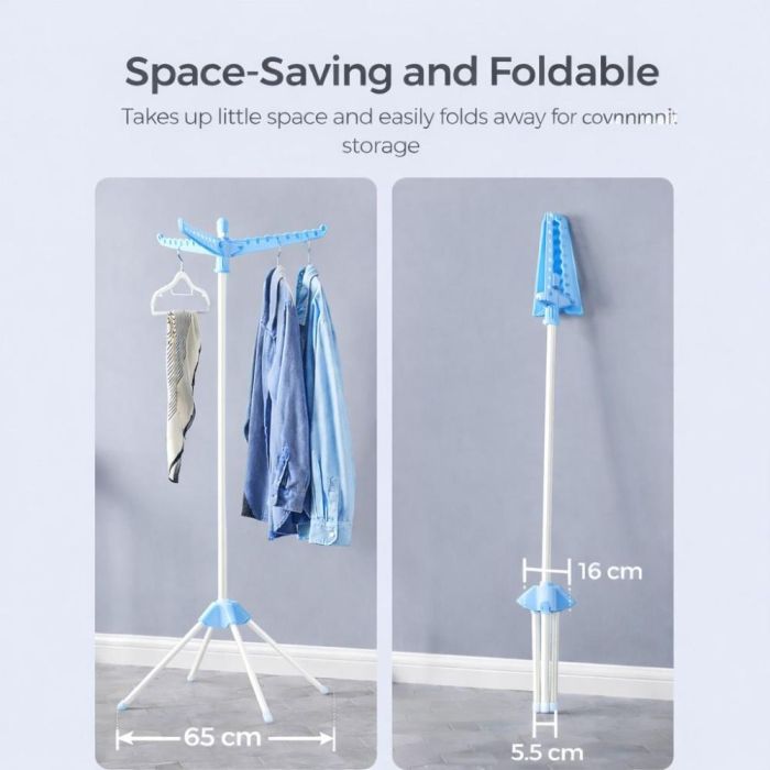 - رف تجفيف ملابس قابل للطي مع 3 أذرع دوارة 68×68×150 سم من Premium Care
