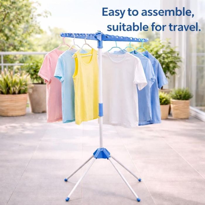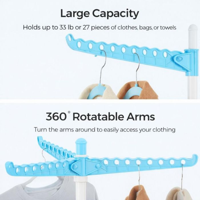 منشر عمودي للملابس مع 3 أذرع دوارة قابلة للطي، يوفر مساحة كبيرة للتجفيف داخل المنزل أو في الهواء الطلق.
