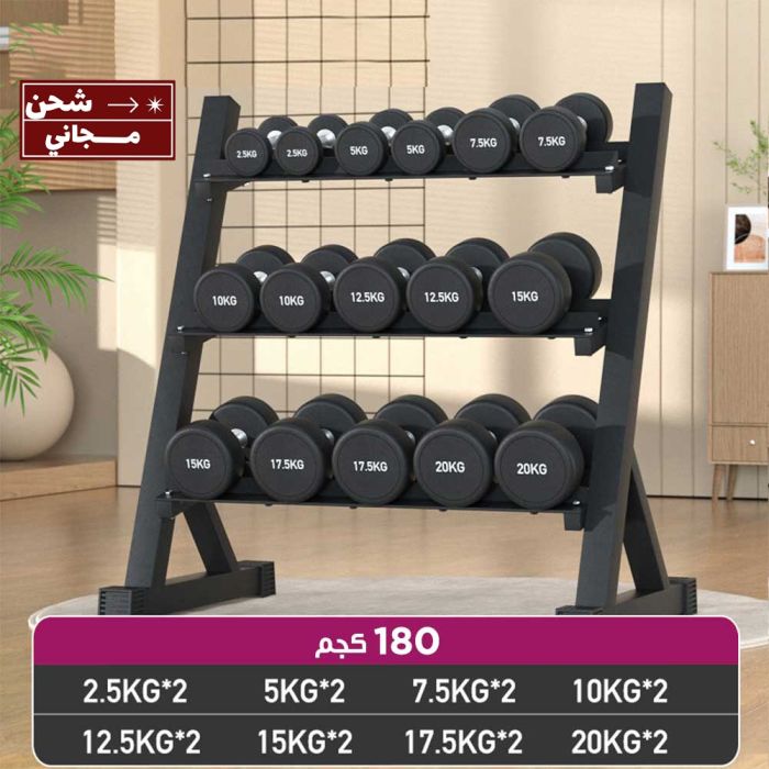 - طقم دامبل احترافي للرجال بوزن 180 كجم مع رف تنظيم