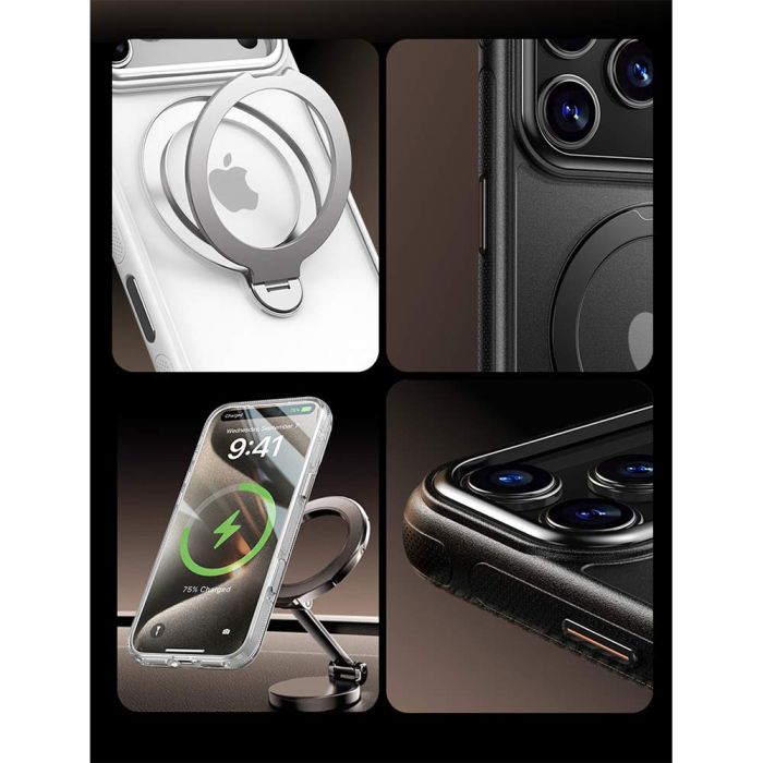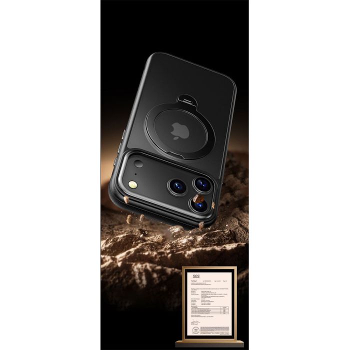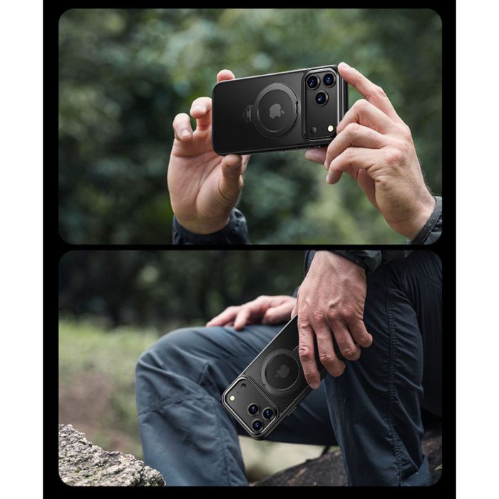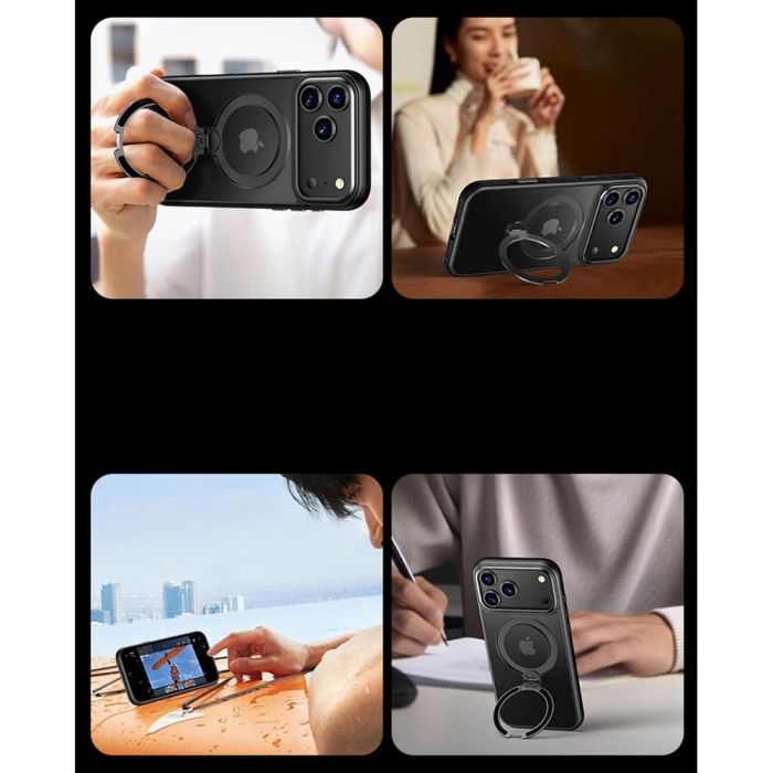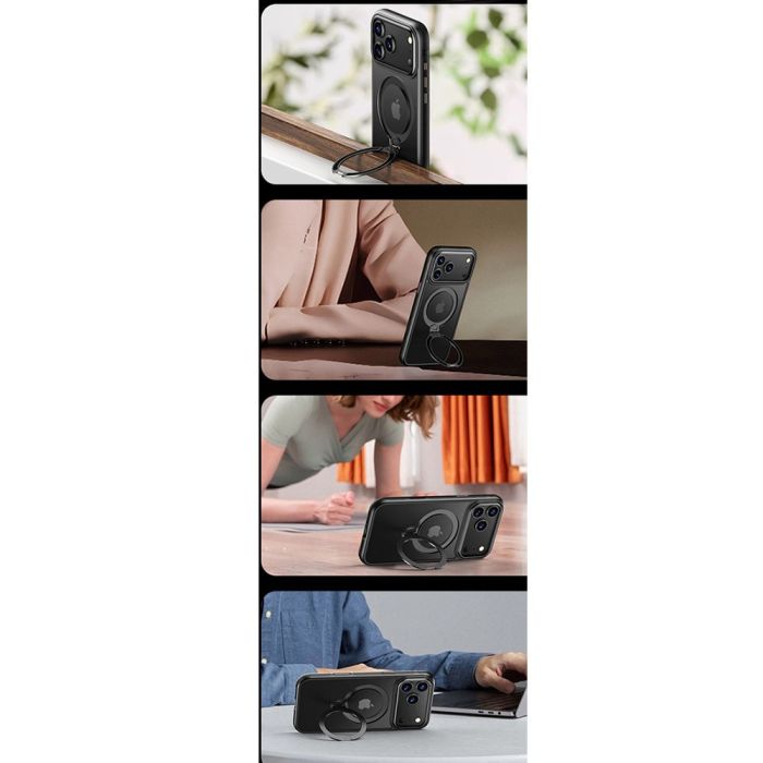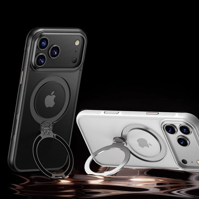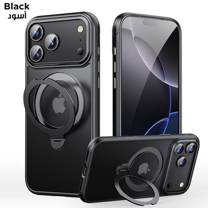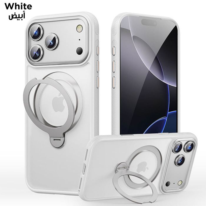 - غطاء حماية مع قاعدة دوّارة وأزرار ذكية لهواتف آيفون