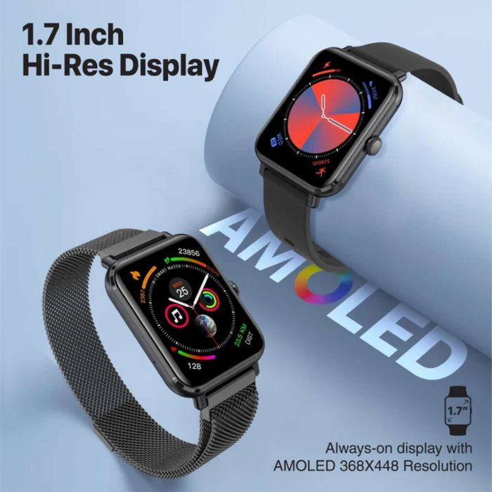 ابقَ على اتصال ونشاط مع هذه الساعة الذكية المتكاملة المصممة لتناسب الحياة اليومية وتتبع اللياقة. تتميز بشاشة AMOLED عالية الدقة بحجم 1.78 بوصة توفر وضوحاً ممتازاً وسهولة في الاستخدام. يدعم اتصال Bluetooth 5.3 إجراء المكالمات واستقبال الإشعارات بسلاسة، بينما تعمل المستشعرات المدمجة على قياس معدل نبض القلب، مستوى الأكسجين في الدم (SpO₂)، عدد الخطوات ونمط النوم. بفضل مقاومتها للماء والغبار بتصنيف IP68، تتحمل الظروف الصعبة. كما تحتوي على ذاكرة تخزين تصل إلى 512 ميغابايت لتشغيل الموسيقى مباشرة من المعصم. تصميم يجمع بين اللياقة، الأداء، والأناقة العصرية.