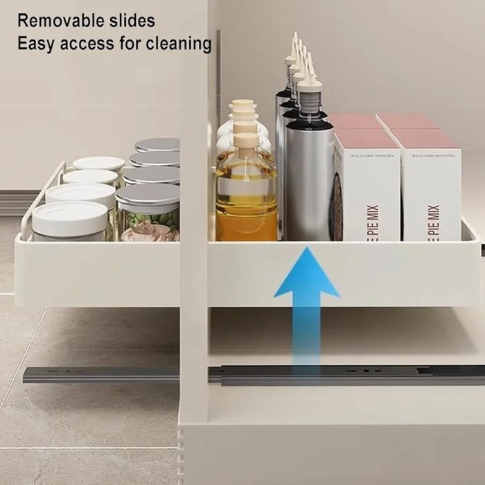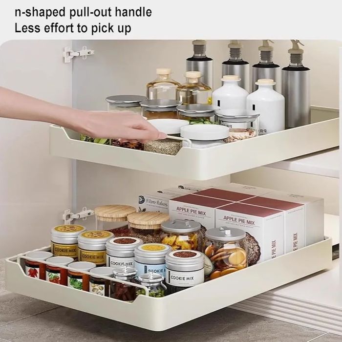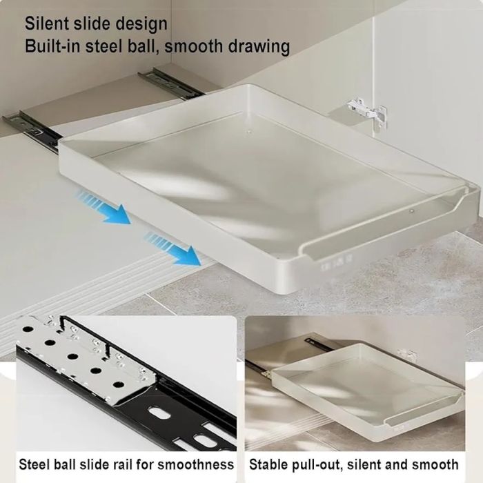 ودّع الفوضى مع منظم الخزانة القابل للسحب! تصميم ذكي يسمح بالوصول السهل إلى المحتويات دون الحاجة لإخراج كل شيء. مصنوع من الفولاذ الكربوني المتين ومثبت بلصق قوي دون حفر أو أدوات. مثالي لتخزين أدوات المطبخ أو الحمام أو المستلزمات المكتبية.