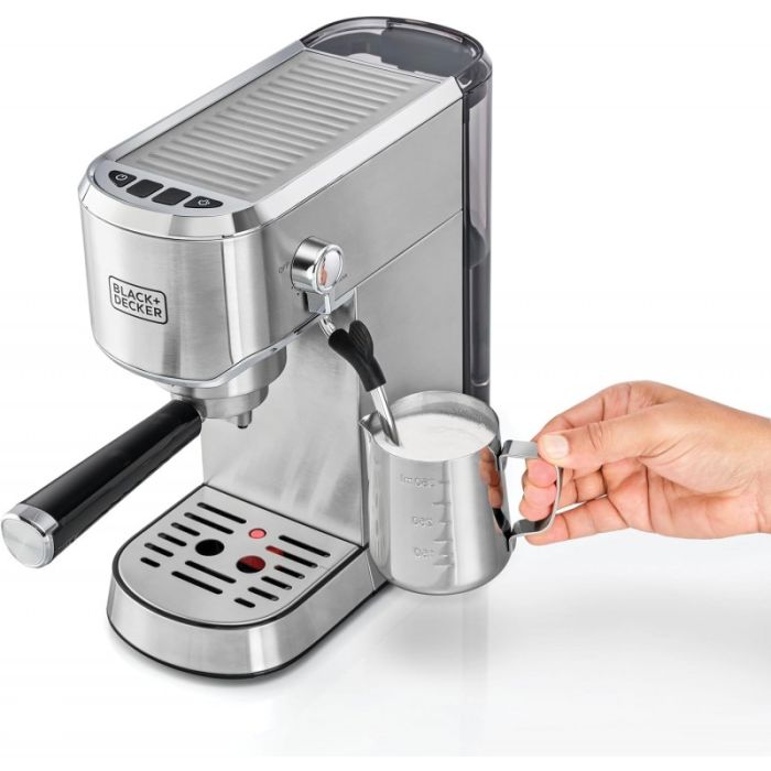 صفقة اليوم هي ماكينة تحضير القهوة والاسبريسو 1 لتر بقوة 1450 واط من Black & Decker ( منتج جديد/ من غير كرتون )