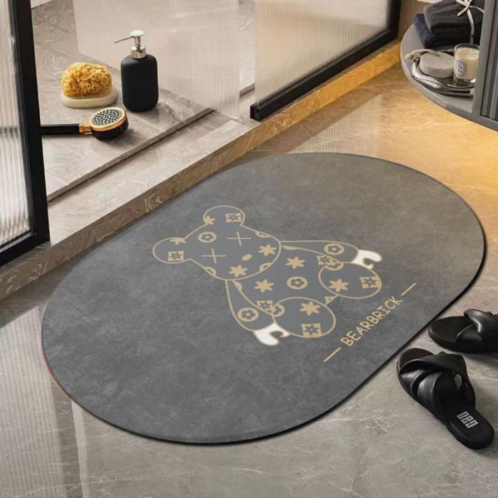سجادة حمام سريعة الامتصاص بتصميم BEARBRICK، تتميز بخامة عالية الامتصاص للماء ومضادة للانزلاق، مع تصميم فريد يعكس أسلوبًا عصريًا. مثالية للحمام والمطبخ، تجمع بين الراحة والأناقة والأداء العالي.