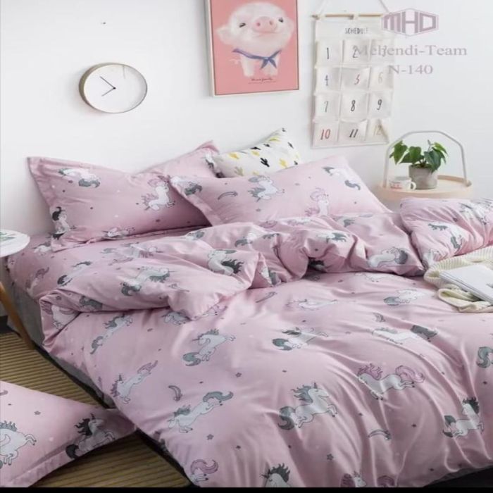 - طقم لحاف وملاءة سرير مطاطية مع أغطية وسائد