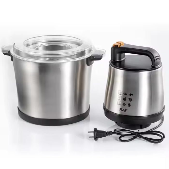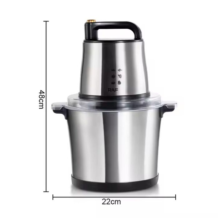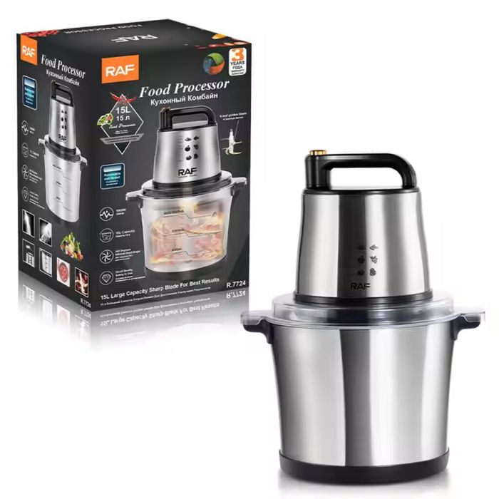 حسّن مطبخك مع محضرة الطعام 15 لتر المصنوعة من الستانلس ستيل من RAF. تتميز هذه المفرمة الكهربائية متعددة الوظائف بمحرك قوي بقوة 1000 واط و4 شفرات حلزونية حادة، ما يجعلها سهلة الاستخدام في التقطيع والفرم والخلط. مصممة للعائلات الكبيرة، حيث توفر سهولة في التشغيل والتنظيف، ونظام خلط بزاوية 360 درجة لنتائج متناسقة.