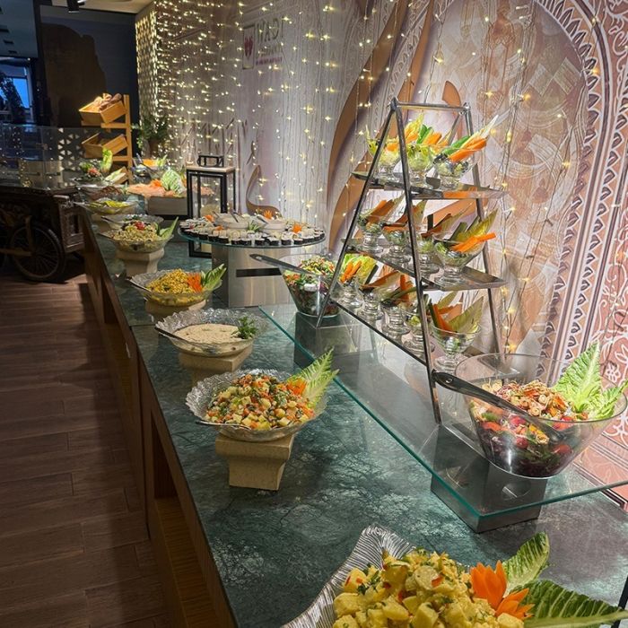 - العرض يشمل المأكولات والمشروبات الموجودة على البوفيه ماعدا ذلك برسوم إضافية
