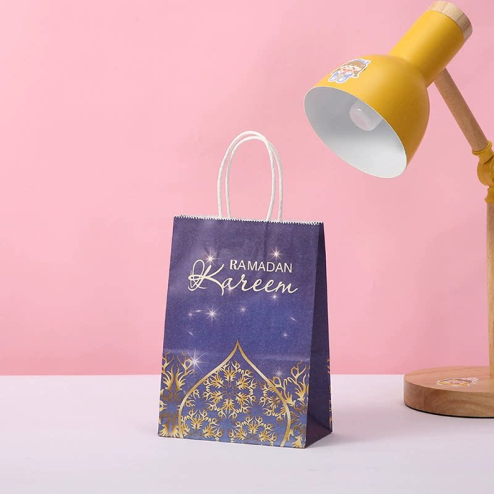 كيس هدايا رمضان ورقي مصنوع من ورق متين بتصميم أنيق يناسب مختلف الاحتفالات ويساعدك على تقديم الهدايا والحلوى بأسلوب مرتب يعكس اهتمامك بالتفاصيل ويمنح الهدية قيمة إضافية جذابة