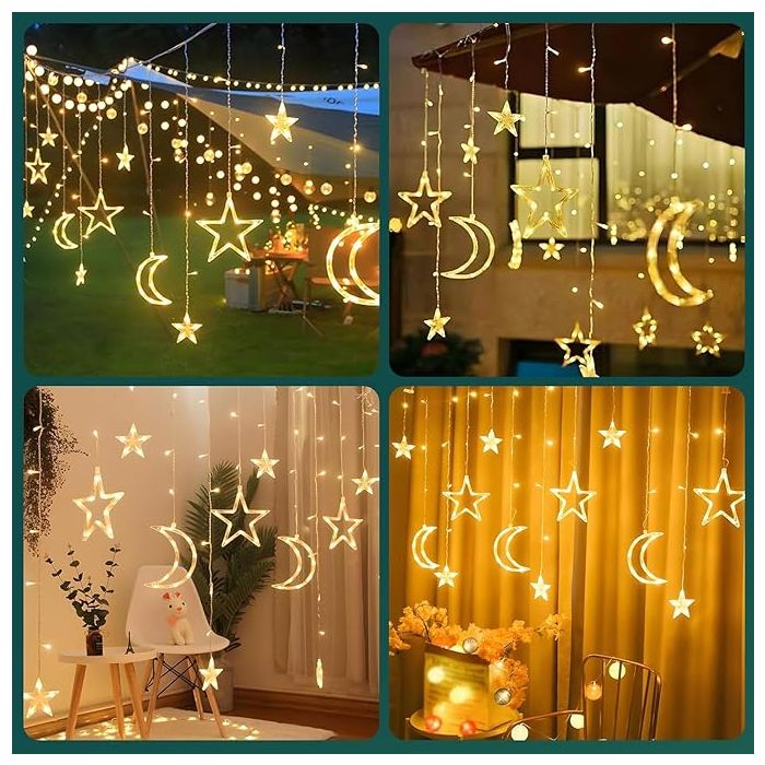 - سلسلة إضاءة تصميم نجمة وهلال رمضان 3 متر