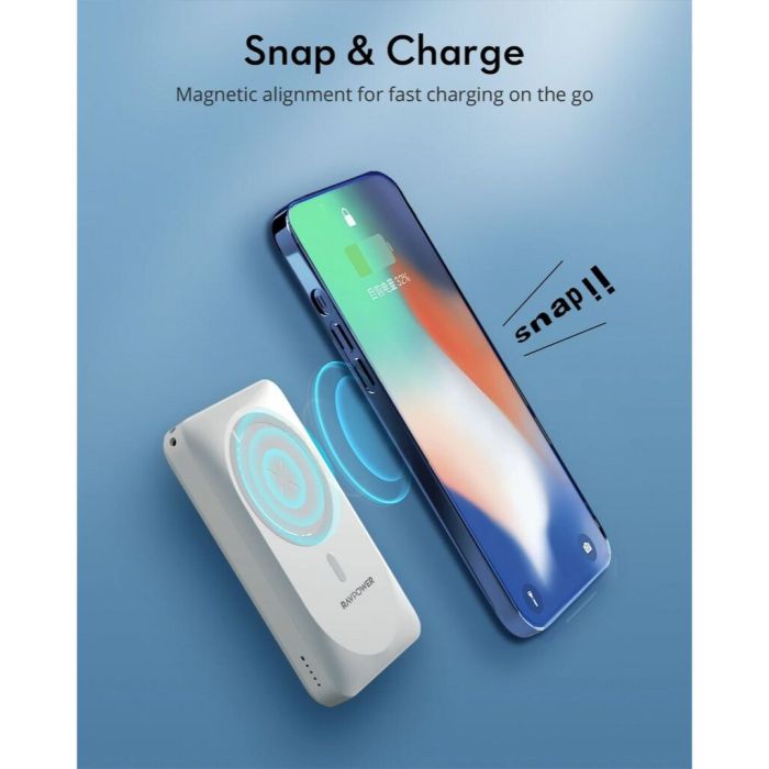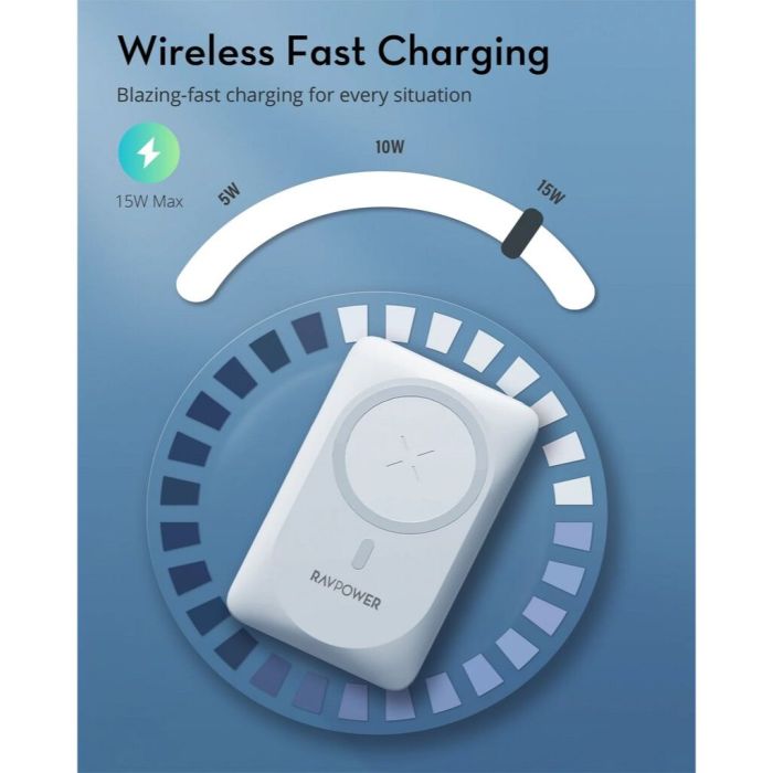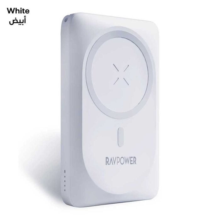- بطارية احتياطية لاسلكية مغناطيسية بسعة 10000 مل أمبير 15 واط منفذ USB-A وUSB-C من RAVPower