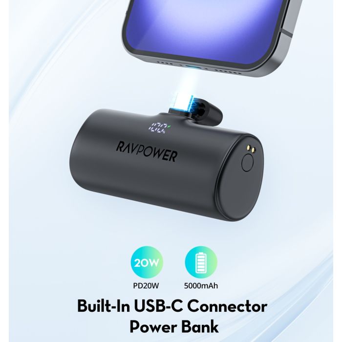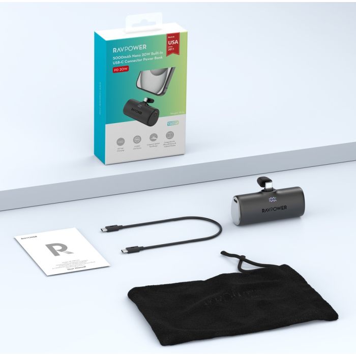 - بطارية احتياطية نانو بقوة 20 واط USB-C سعة 5000 مللي أمبير من RavPower