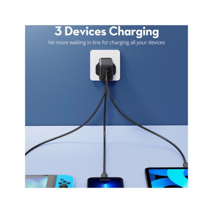 - 3 منافذ لشحن عدة أجهزة في نفس الوقت