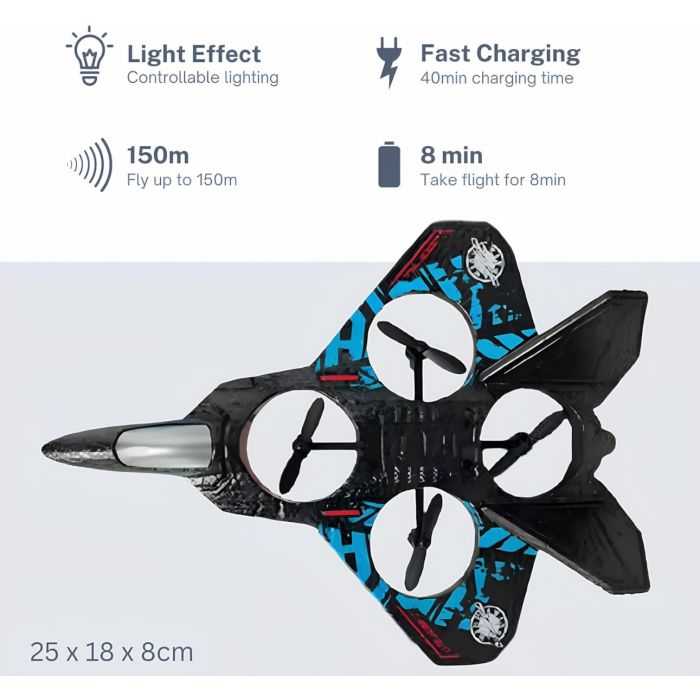 طائرة درون خفيفة الوزن ومرنة مصممة للمناورات الجوية المثيرة. مزودة ببطارية 3.7 فولت بسعة 300 مللي أمبير، توفر حتى 8 دقائق من وقت الطيران بعد شحن سريع لمدة 40 دقيقة. مع نطاق تحكم يصل إلى 150 مترًا، فهي مثالية للمبتدئين والهواة الباحثين عن تجربة طيران ممتعة.