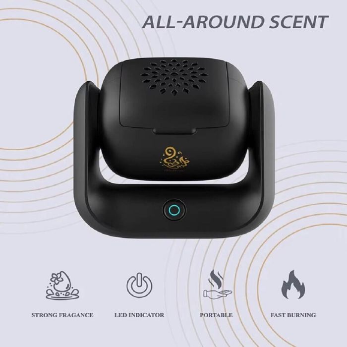 مبخرة تجمع بين التكنولوجيا الحديثة ونشر العطور التقليدي، مما يوفر طريقة مريحة وفعالة للاستمتاع بروائحك المفضلة. تصميمها المدمج وبطاريتها القابلة لإعادة الشحن يجعلها مثالية للاستخدام في أماكن عديدة، مما يضمن لك رائحة زكية أينما ذهبت