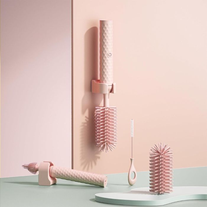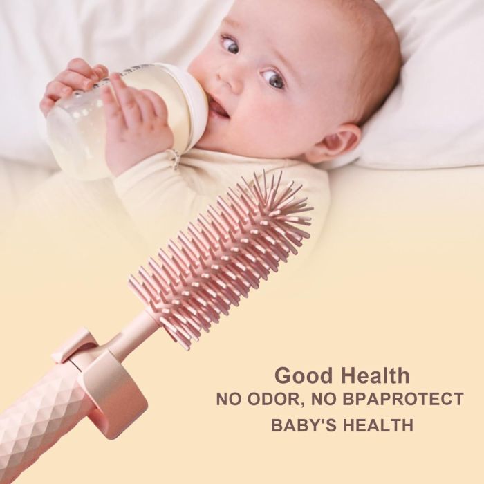 فرشاة تنظيف الزجاجات باستخدام شعيرات السيليكون الدوارة يمكنها إزالة البقايا بسهولة، مما يوفر وقتك لتنظيف الزجاجات والأكواب وإكسسوارات المطبخ الأخرى.