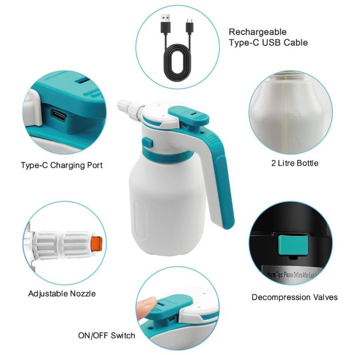 - بخاخ رغوة متعدد الاستخدامات قابل للشحن سعة 2 لتر لغسيل السيارات وتنظيف المنزل