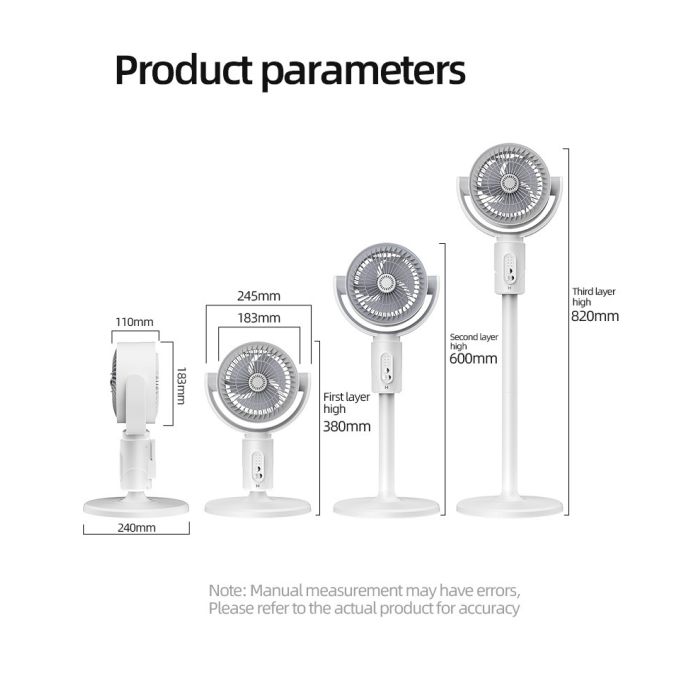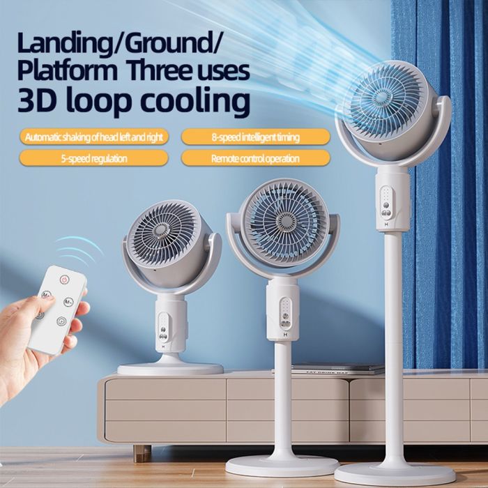 - مروحة دائرية قابلة لإعادة الشحن مع 5 سرعات وجهاز تحكم 24 × 11 × 82 سم