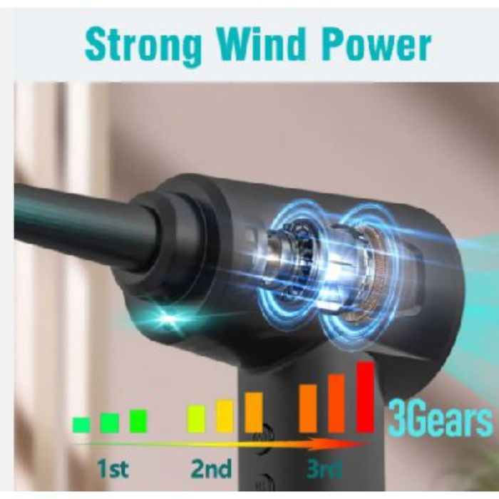 منظف هوائي كهربائي لاسلكي 3 سرعات قابل لإعادة الشحن