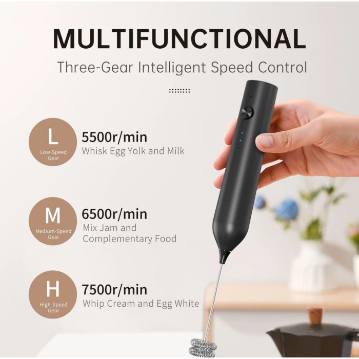 - خفاقة حليب أتوماتيكية قابلة لإعادة الشحن ب 3 سرعات - أسود من Orca