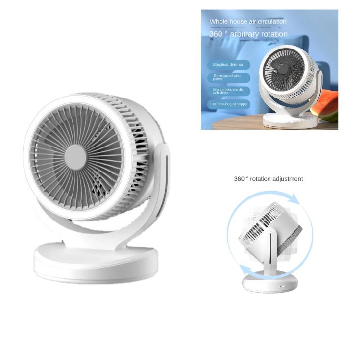 مروحة قابلة للشحن قوة 5 واط مع إضاءة LED ودوران 360 درجة
